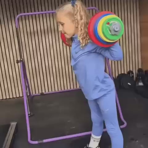 Fill the weights to maximum and it still offers a real challenge for older kids. Little Lifters is designed primarily for ages 1–6, but plenty of 7-year-olds love having their own gym equipment. If your child is already into organized sports or serious training, they may be ready for the next level — but for home play with mom or dad, this still works great.